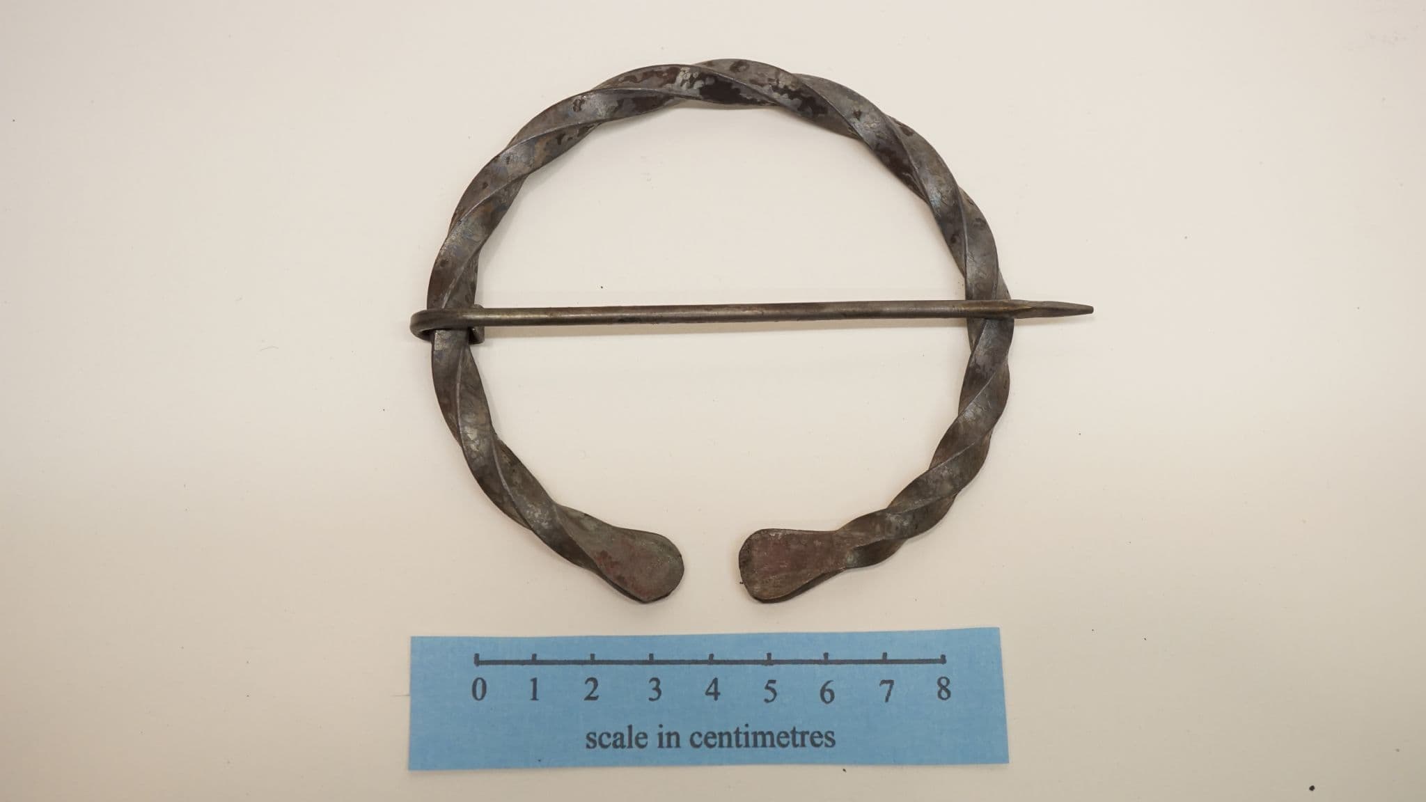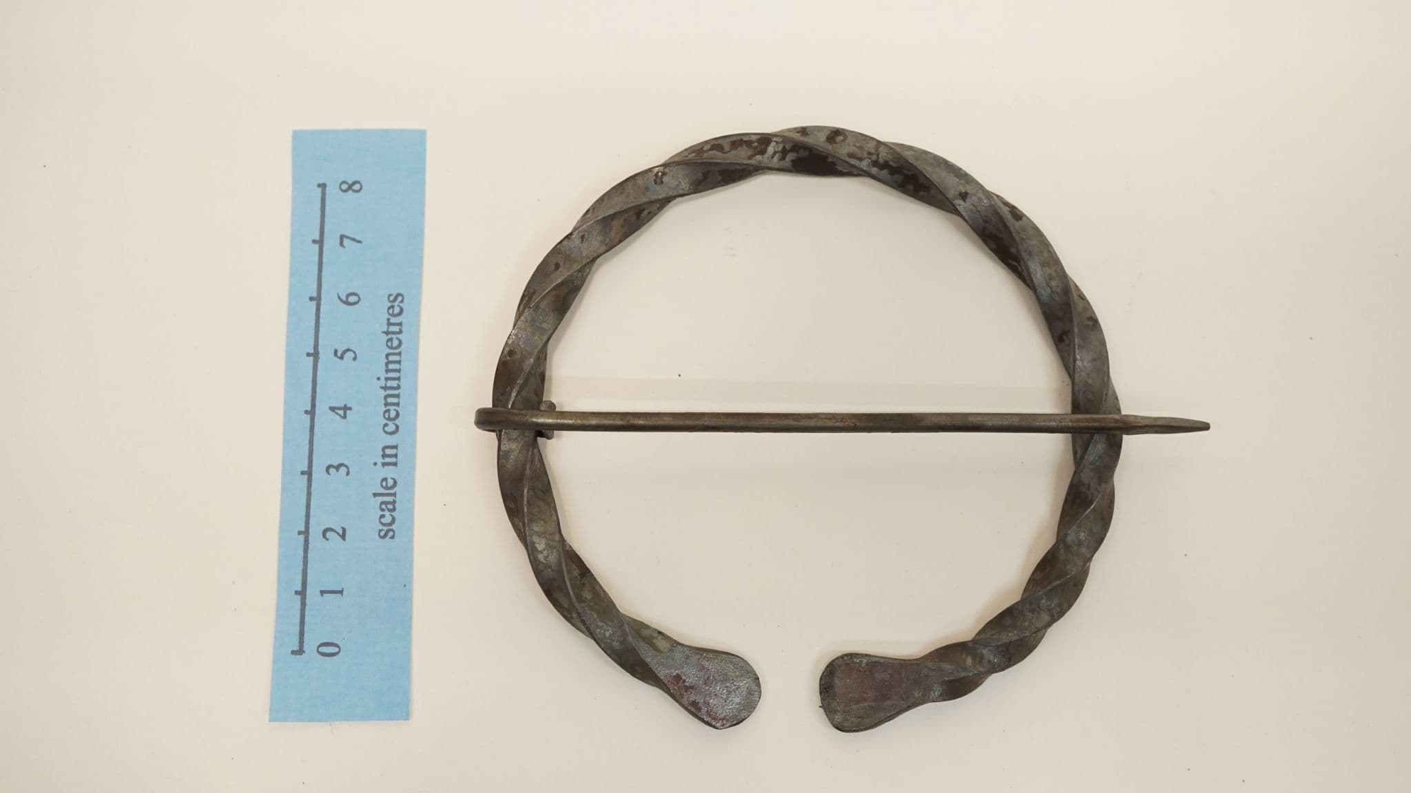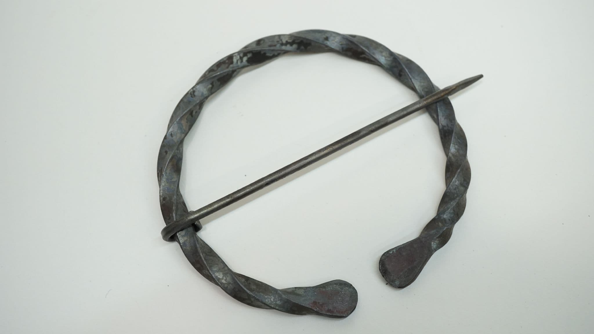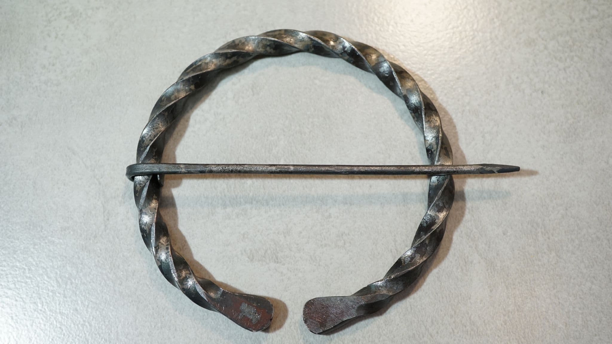 a hand forged steel 6mm square section twisted penannular brooch with spatulate terminals (fowler class H) 4" 10cm diameter for multi period use, this is the model we supplied to the outlander TV series. made in sheffield england by daegrad tools