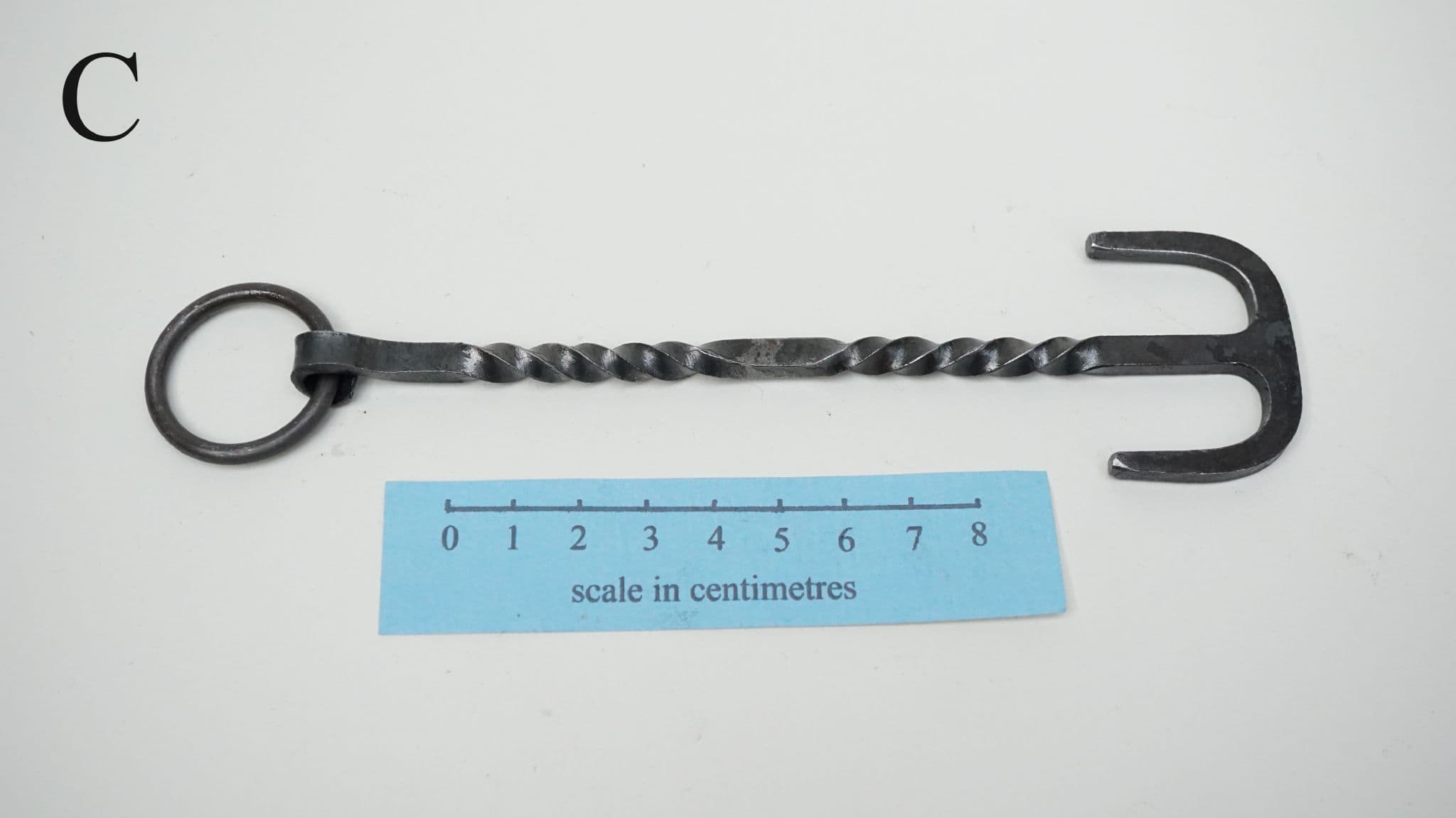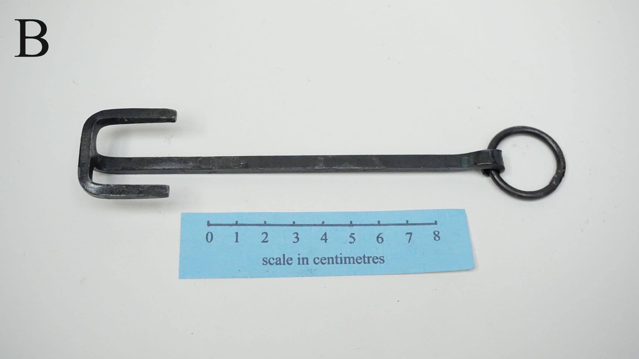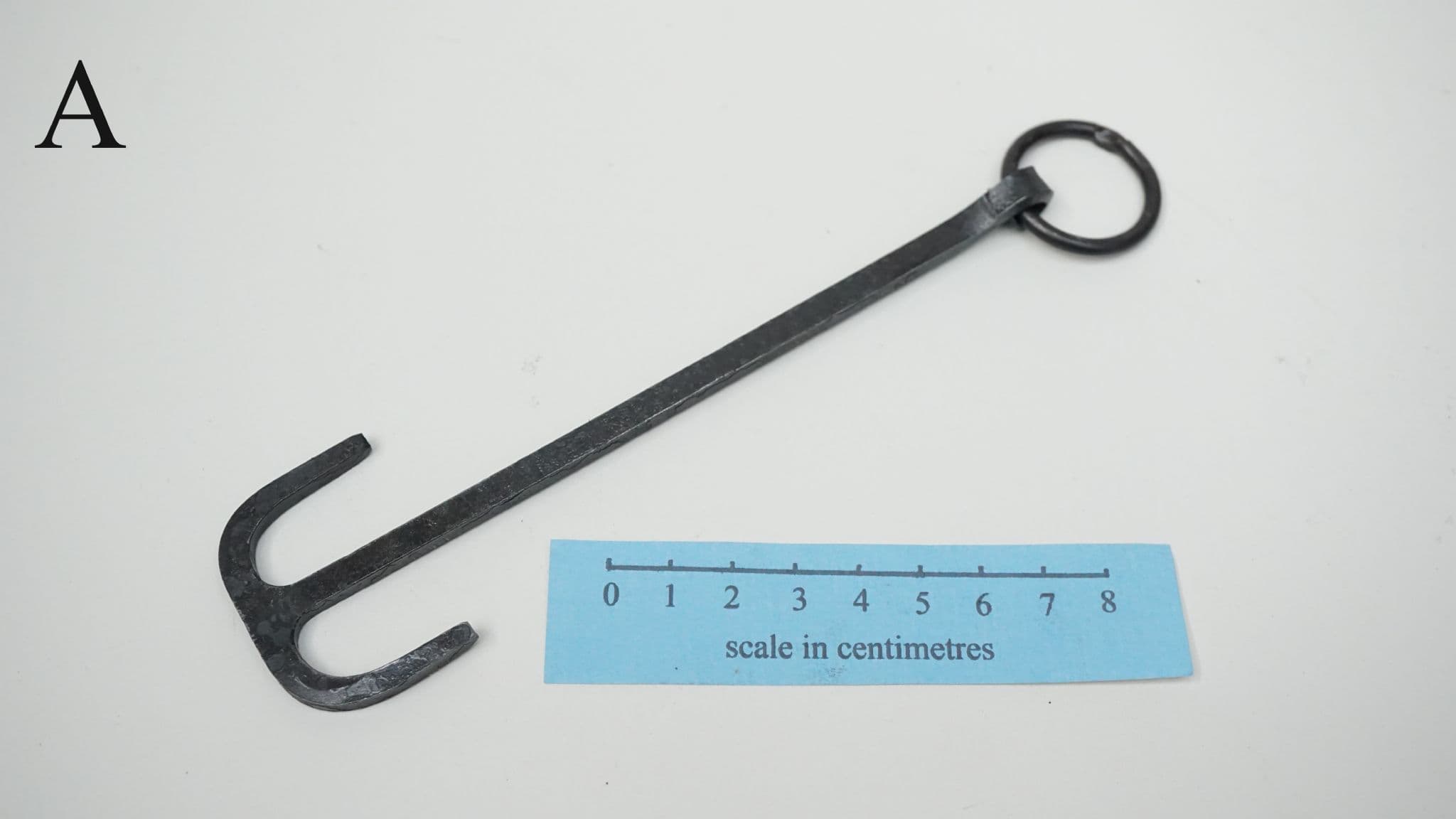 a choice of three hand forged steel latch lifters, keys or girdle hangers of the Anglo-Saxon period, each one supplied on a 22mm diameter 3mm thick steel split ring for belt suspension. based on the following finds;