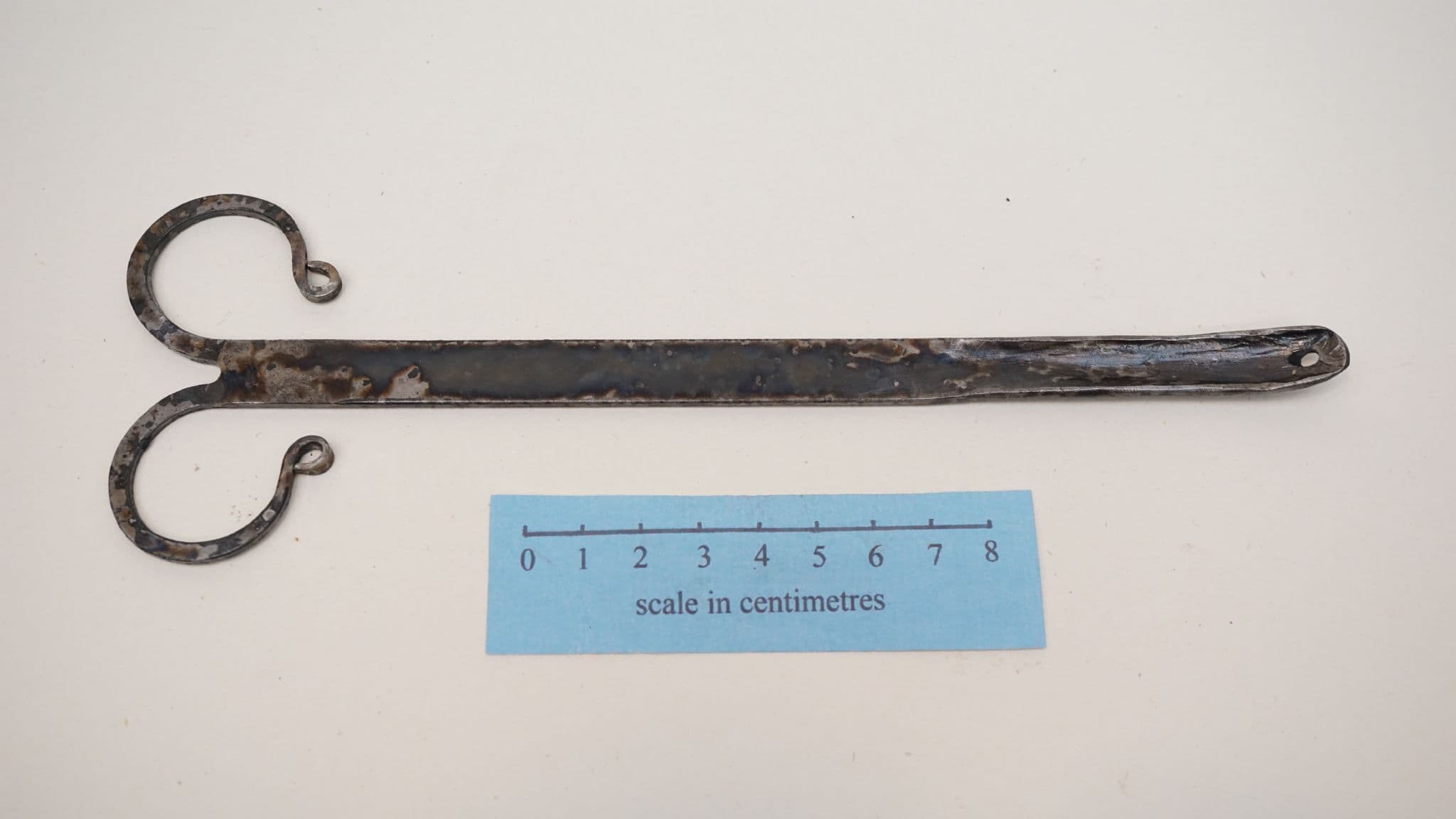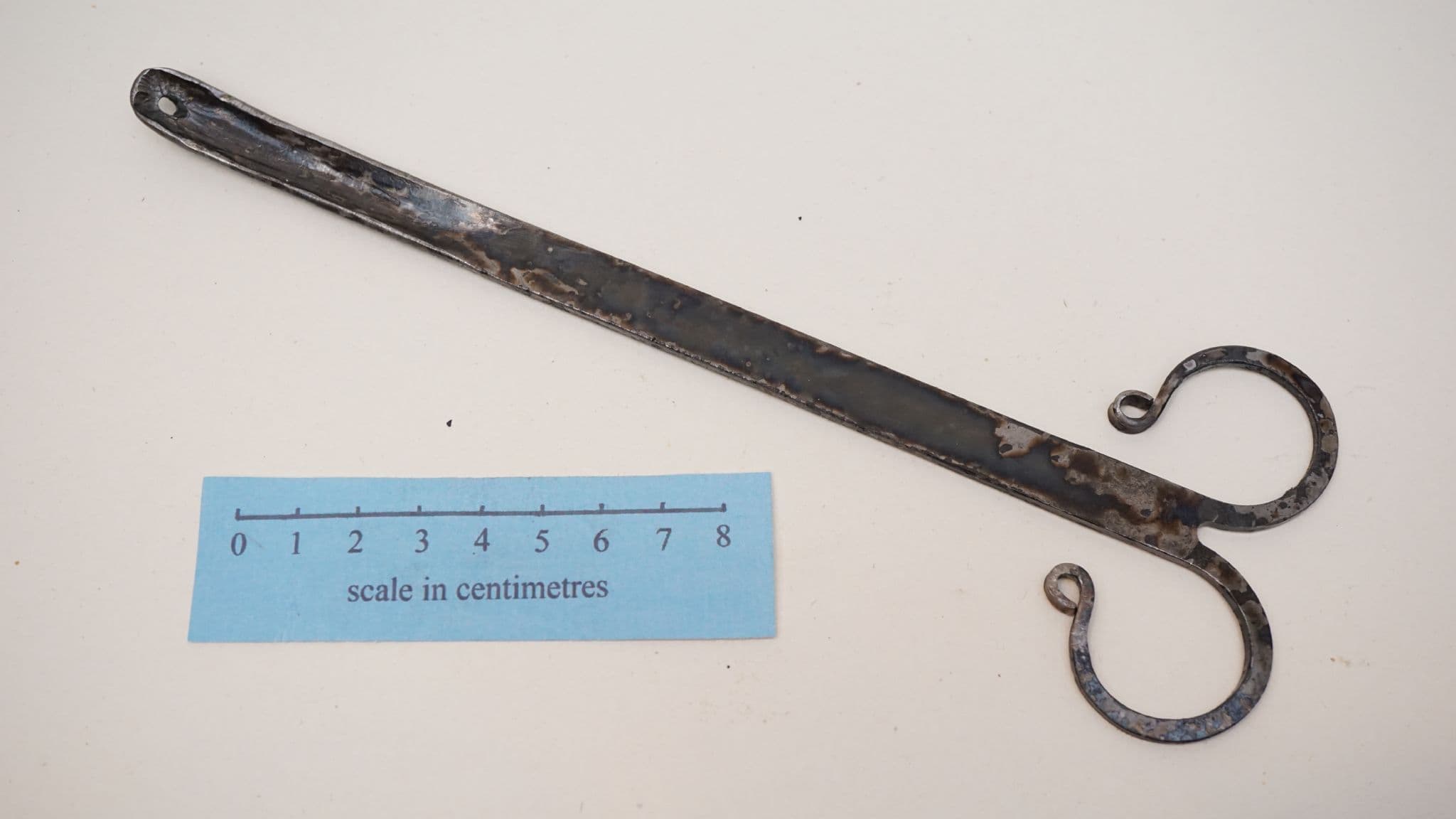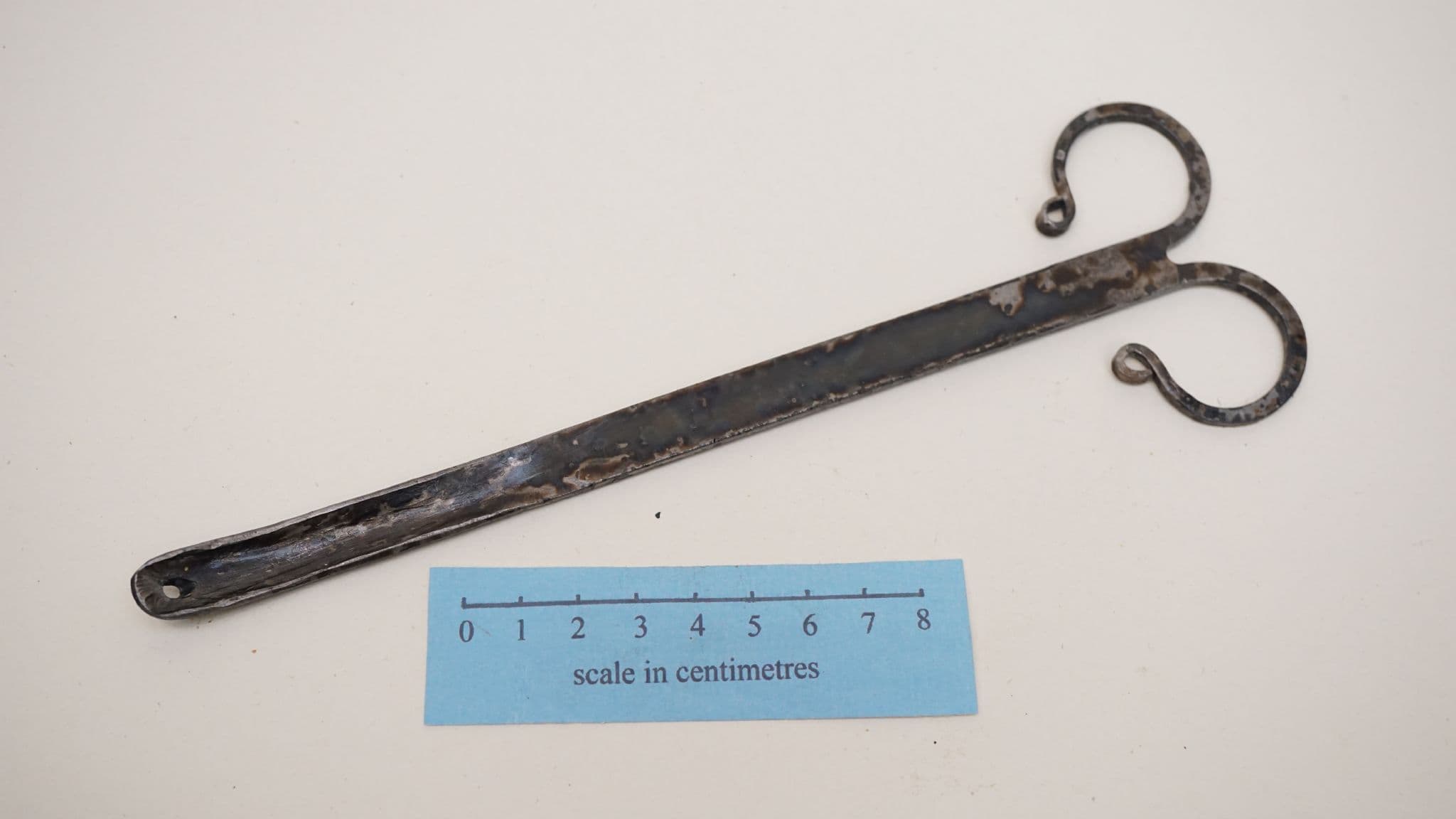 a hand forged steel spoon of Diocles for the removal of arrows from wounds, covers the Ancient Greek to Medieval periods, for use by a barber surgeon, comes with a small leaf arrow head to complete the demonstration or available as spoon only made in Sheffield England by Daegrad Tools