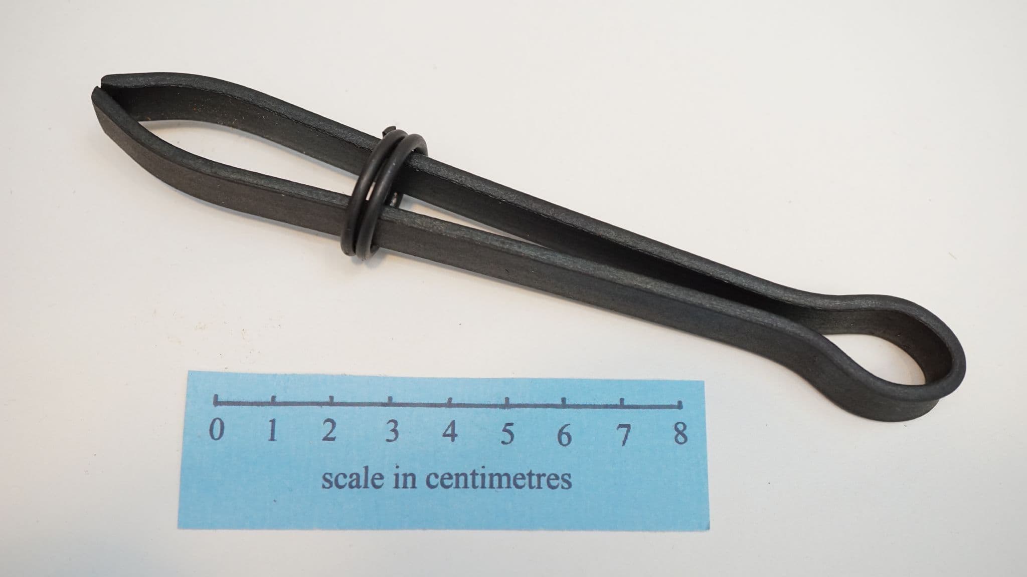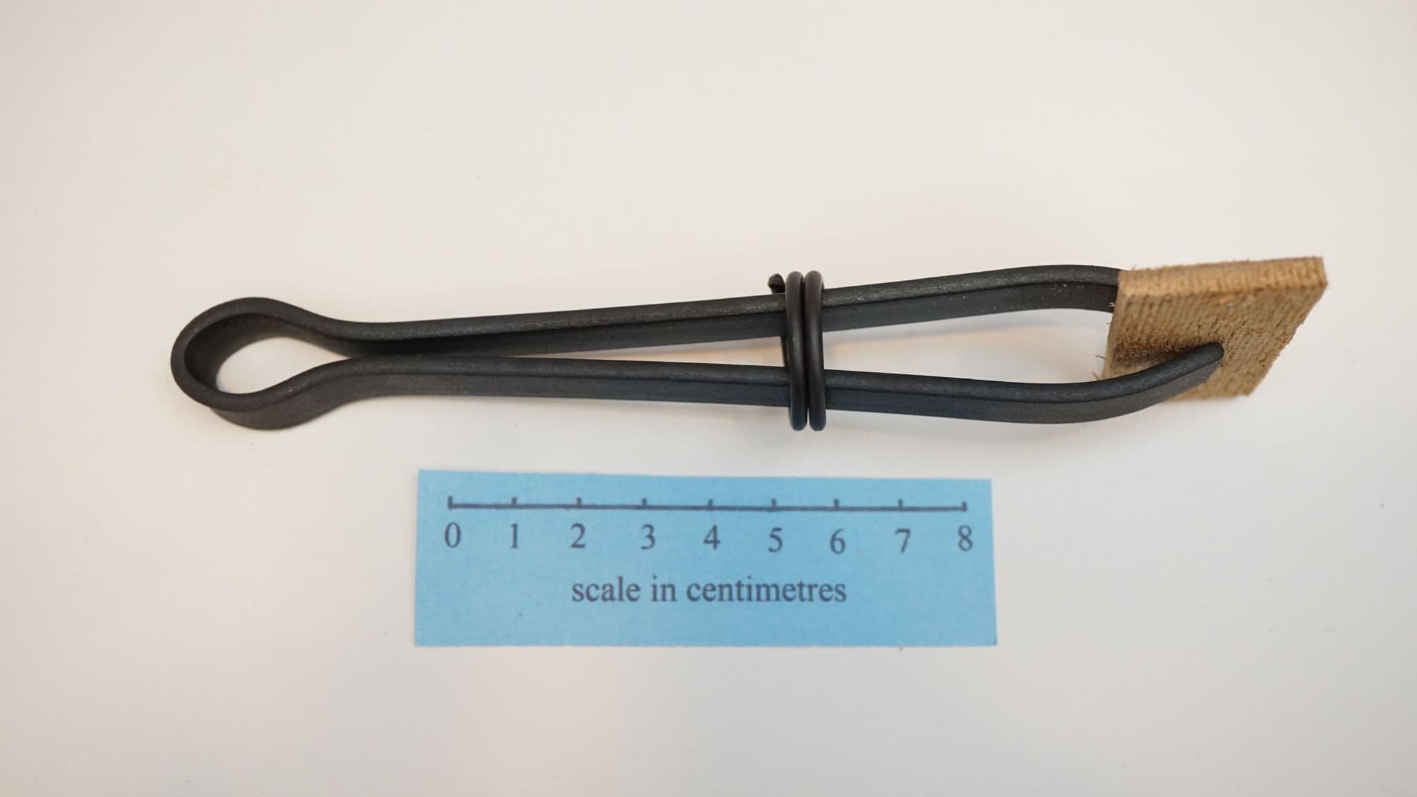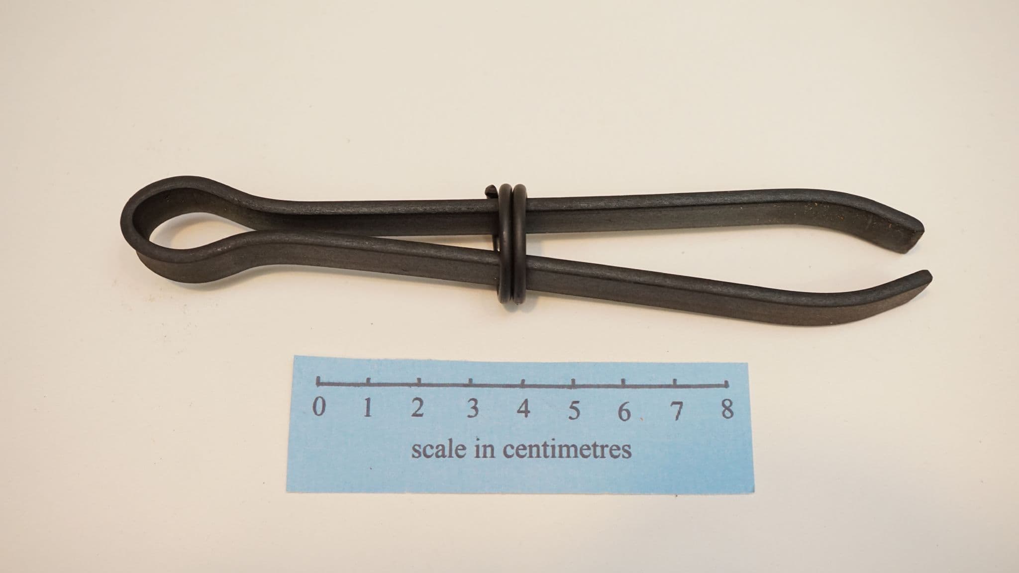 a hand forged set of steel locking tweezers based on a find from Novgorod in Russia,