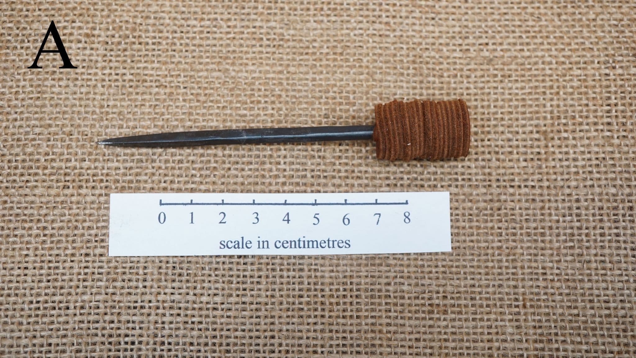 A, Awl 043 (MoLA47) type 5 copthall court find unstratified, comes with leather washers for a comfortable grip.