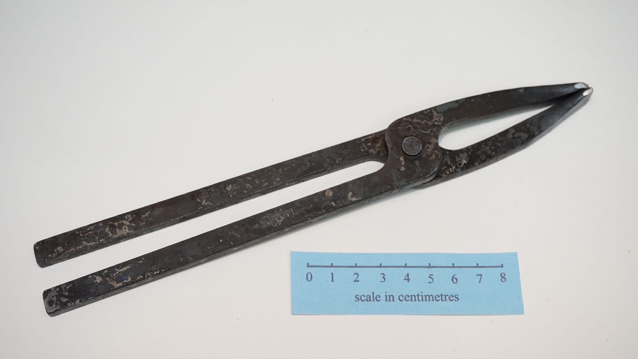 a hand forged and water quenched S275JR steel pliers or tongs to a generic Roman and Medieval style, designed for light metalworking use or any other craft application you can think of!, tapered spoon head jaws with a tolal length of around 8" 200mm. made in Sheffield England by Daegrad Tools, the example shown here is based on a Roman period type 5 from vienna as shown in; Die Eisenhortfunde der pfaltz aus dem 4 jahrhundert nach Christus by Barbel Hanemann